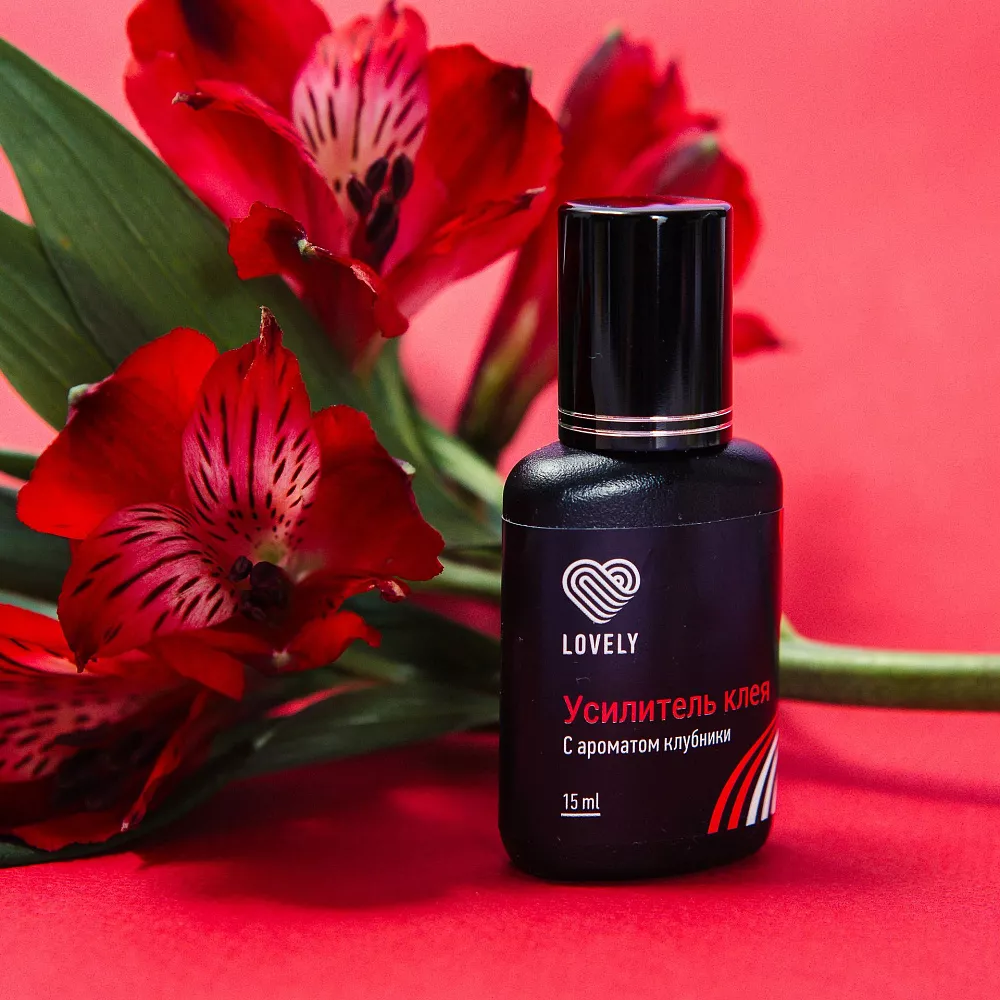 Усилитель клея для наращивания ресниц Lovely с ароматом клубники, 15 мл.