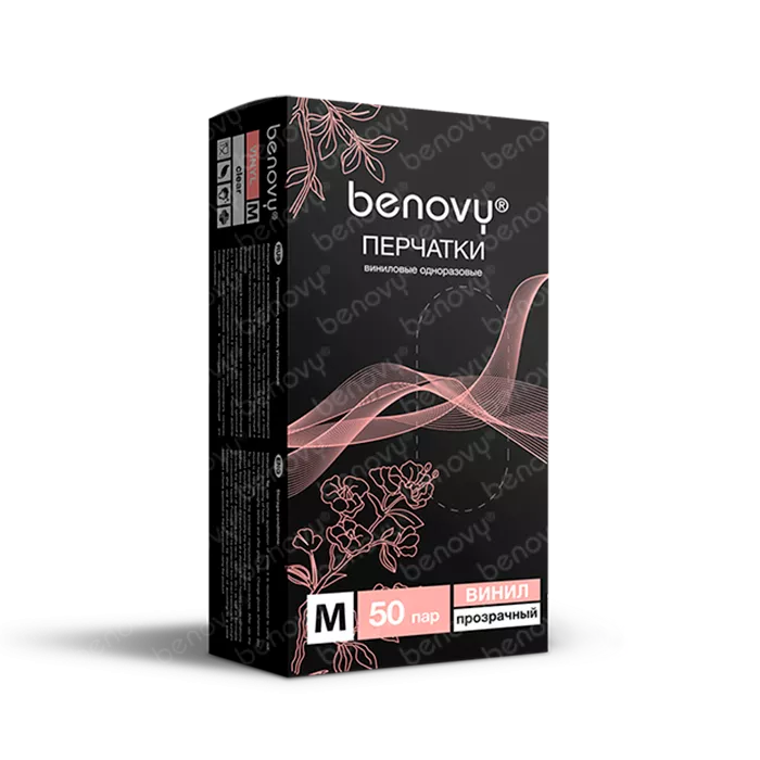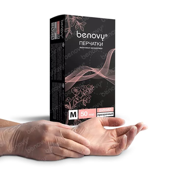 Перчатки виниловые BENOVY S, прозрачные, 50 пар