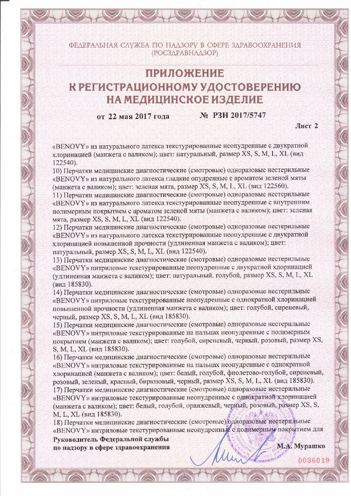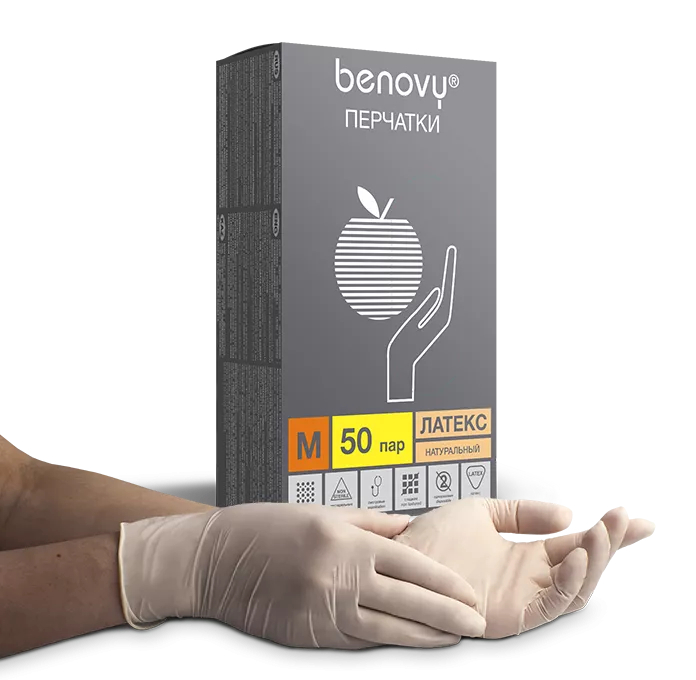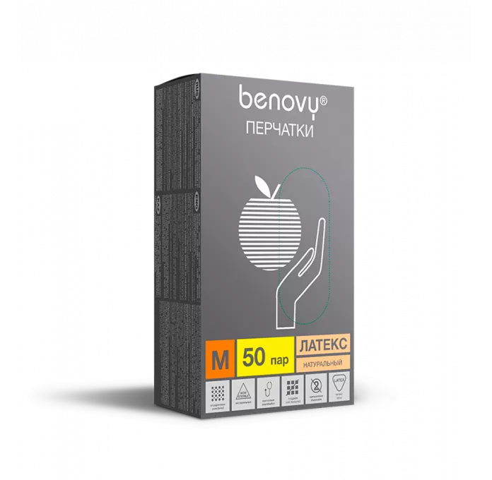 Перчатки латексные опудренные гладкие Benovy M, 50 пар