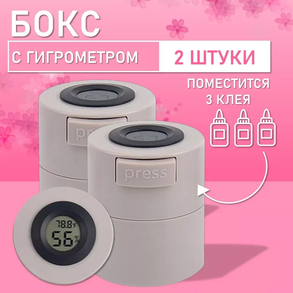 Бокс для хранения трех клеев с гигрометром серый 2 шт