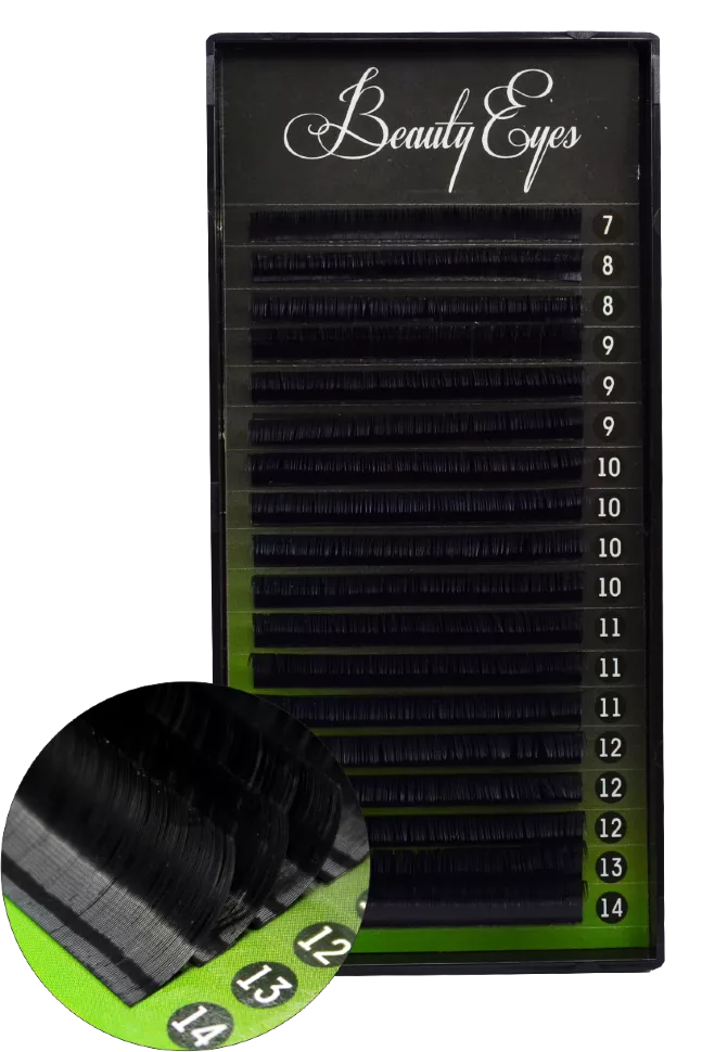 Beauty Eyes - ресницы премиум-класса. Изготовлены из качественного волокна. Они ровные и мягкие, отлично держат форму и имеют насыщенный цвет.