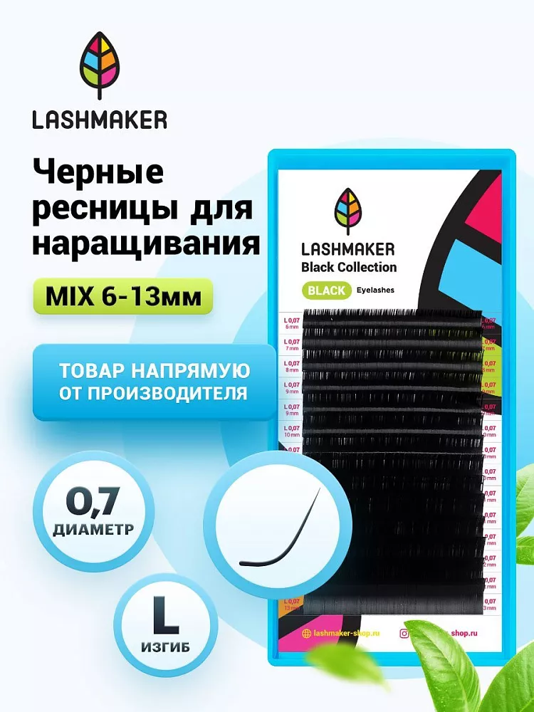 Черные ресницы Lashmaker 14 линий (миксы)
