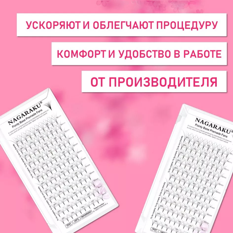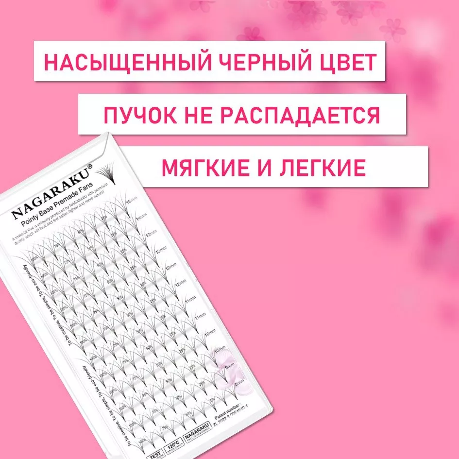 Пучковые ресницы Nagaraku Pointy Base 4D small — профессиональное решение для мастеров, стремящихся к качественному и долговечному результату наращивания с максимальным объемом.
