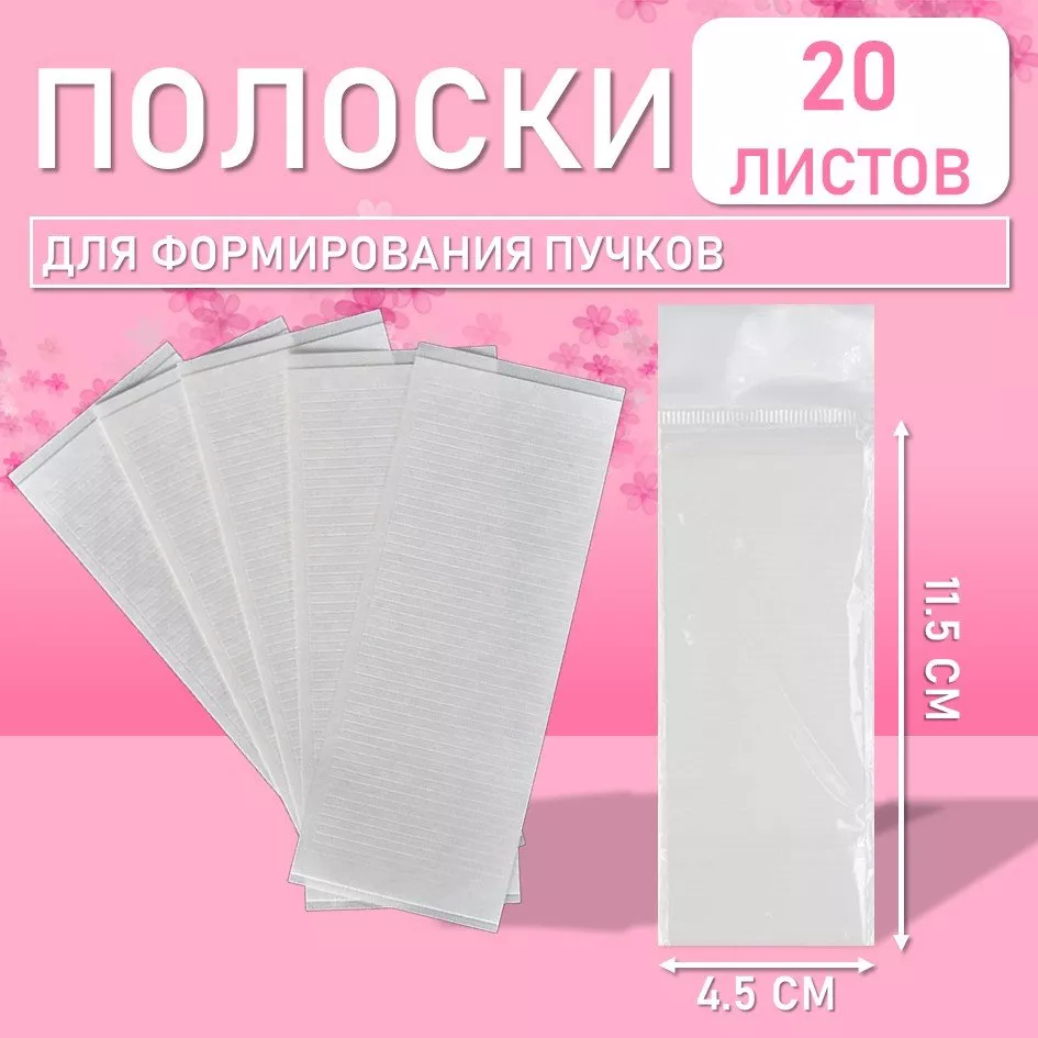Профессиональный набор включает 20 листов двусторонней клейкой ленты для формирования пучков ресниц. Комплект рассчитан на длительное использование и подходит для интенсивной работы мастера.