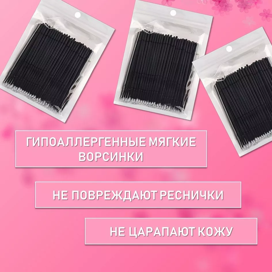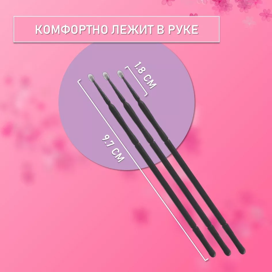Профессиональные микробраши черного цвета в большом комплекте для салонного использования. Идеально подходят для работы с ресницами и бровями.