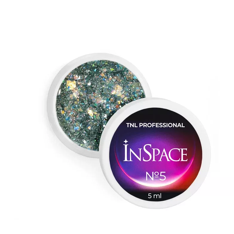 Гель для дизайна InSpace, светоотражающий с голографическим глиттером №05 - металлическая иллюзия, TNL Professional, 5 мл