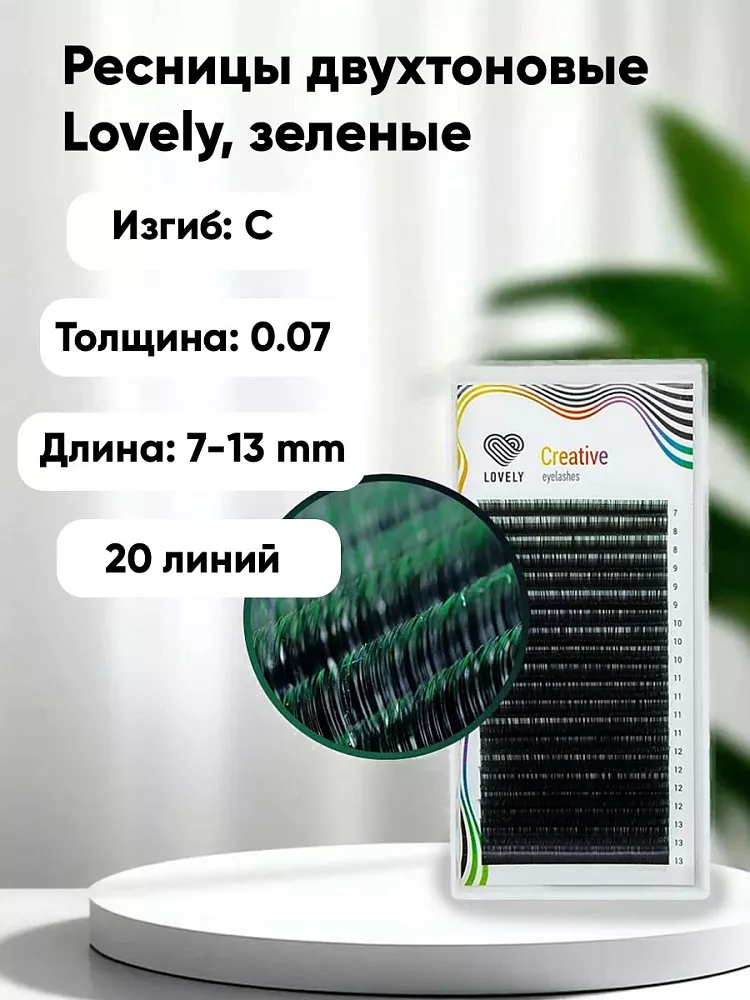 Ресницы двухтоновые Lovely MIX, Зеленые, 20 линий