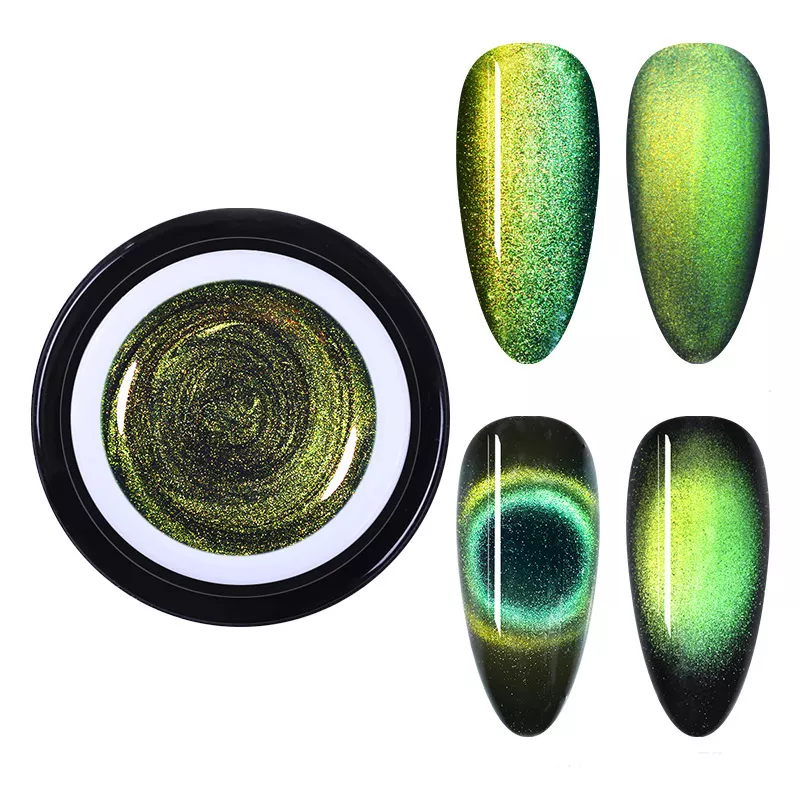 Оттенок: магнитный с бликом из зелено-желтых блесток