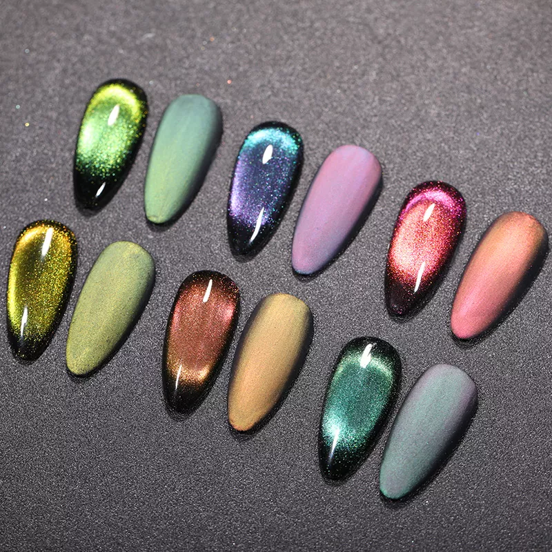 9D Cat Eye Series - линейка магнитных гель-лаков для создания эффектного маникюра с объемным эффектом кошачьего глаза. 9D эффект заключаются в образовании блика из контрастных цветов