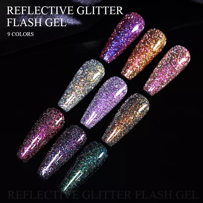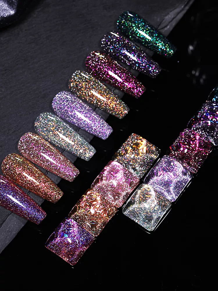 Reflective Glitter Series - линейка гель-лаков с необыкновенными завораживающими переливами голографических блесток-хлопьев и светоотражающим эффектом.