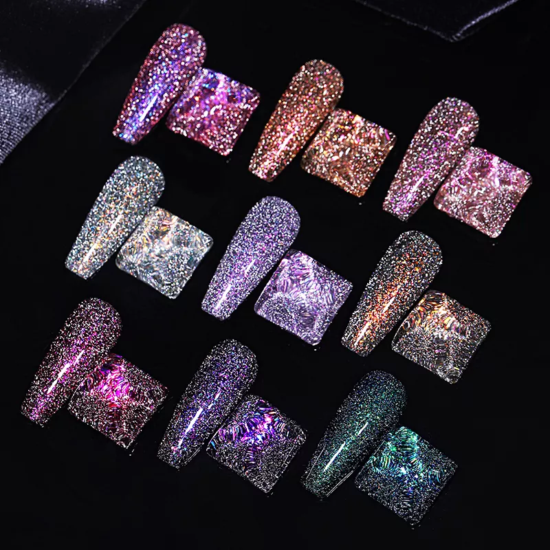 Гель-лаки привлекают внимание не только своими магическими переливами, но и пробуждаются бриллиантовыми вспышками под лучами солнца или в ярком искусственном освещении