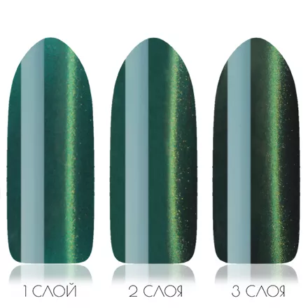 4. Для получения эффекта «Кошачий глаз» поднесите магнит перед сушкой последнего слоя гель-лака. Поднесите магнит ребром на расстоянии 1 см от поверхности ногтя. Удерживайте 10 секунд.