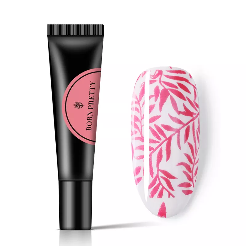 Гель-паста Born Pretty имеет среднюю консистенцию. Он не растекается в процессе создания рисунка, что делает его незаменимым при работе со сложными художественными композициями, требующими длительной многократной прорисовки. Густота краски оптимально подходит для стемпинга и способствует оптимальному расходованию материала: нанеся ее на пластину, а затем, перенеся рисунок на штамп, можно сделать до 5-ти четких оттисков (каждый раз вновь перенося рисунок на штамп), то есть, буквально проработать все ноготки одной руки минимальным количеством краски.