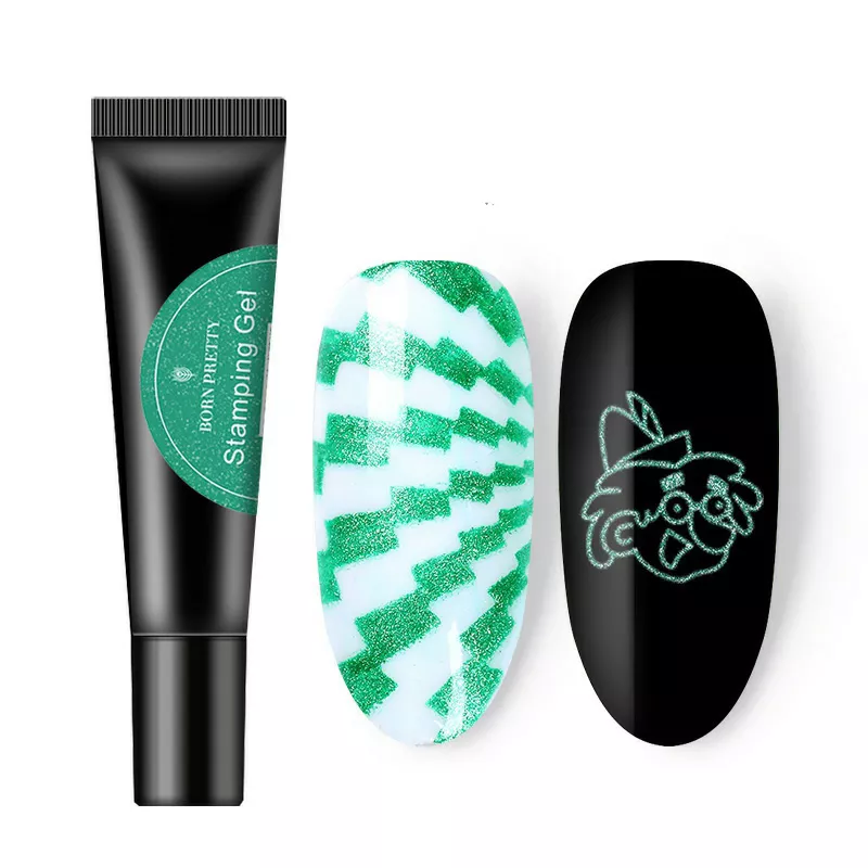 Гель-паста Born Pretty имеет среднюю консистенцию. Он не растекается в процессе создания рисунка, что делает его незаменимым при работе со сложными художественными композициями, требующими длительной многократной прорисовки. Густота краски оптимально подходит для стемпинга и способствует оптимальному расходованию материала: нанеся ее на пластину, а затем, перенеся рисунок на штамп, можно сделать до 5-ти четких оттисков (каждый раз вновь перенося рисунок на штамп), то есть, буквально проработать все ноготки одной руки минимальным количеством краски.