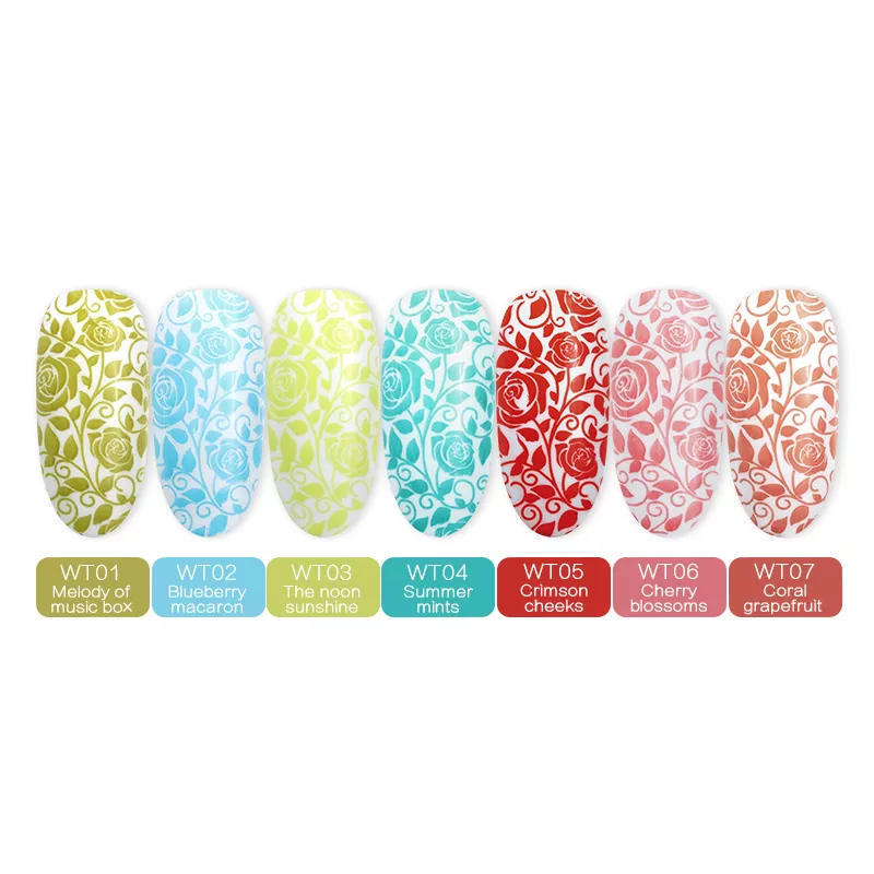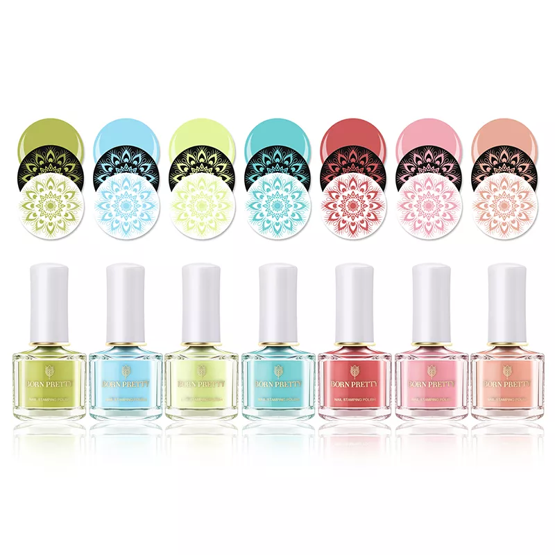Лаки Born Pretty - качественные лаки для стемпинга, которые имеют высокую концентрацию пигмента в составе, благодаря чему смотрятся ярко и насыщенно. Обладают оптимальной консистенцией, легко ложатся на пластину или диск. Их преимущество - оптимальная скорость высыхания, не засыхают на штампе. Рисунок хорошо переносится на ноготок (даже самые мелкие детали остаются видны), имеет четкий контур и не смазывается после нанесения топового покрытия. Узоры особенно выигрышно смотрятся на ноготке, который покрыт контрастным цветом.