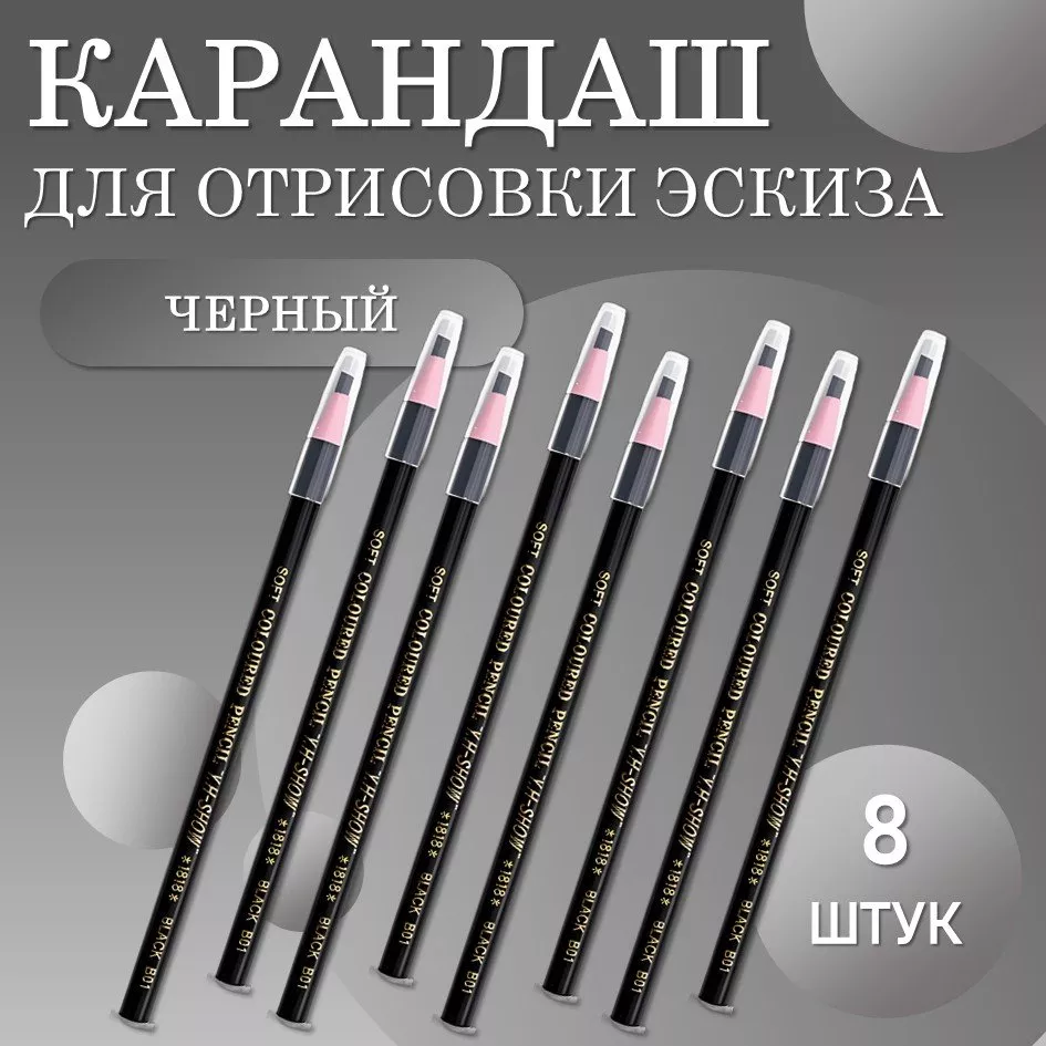 Карандаш для отрисовки эскиза водостойкий, черный -8 шт
