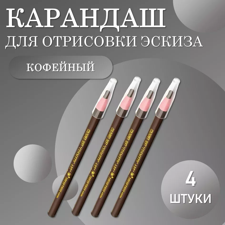 Карандаш для отрисовки эскиза водостойкий, кофейный - 4 шт