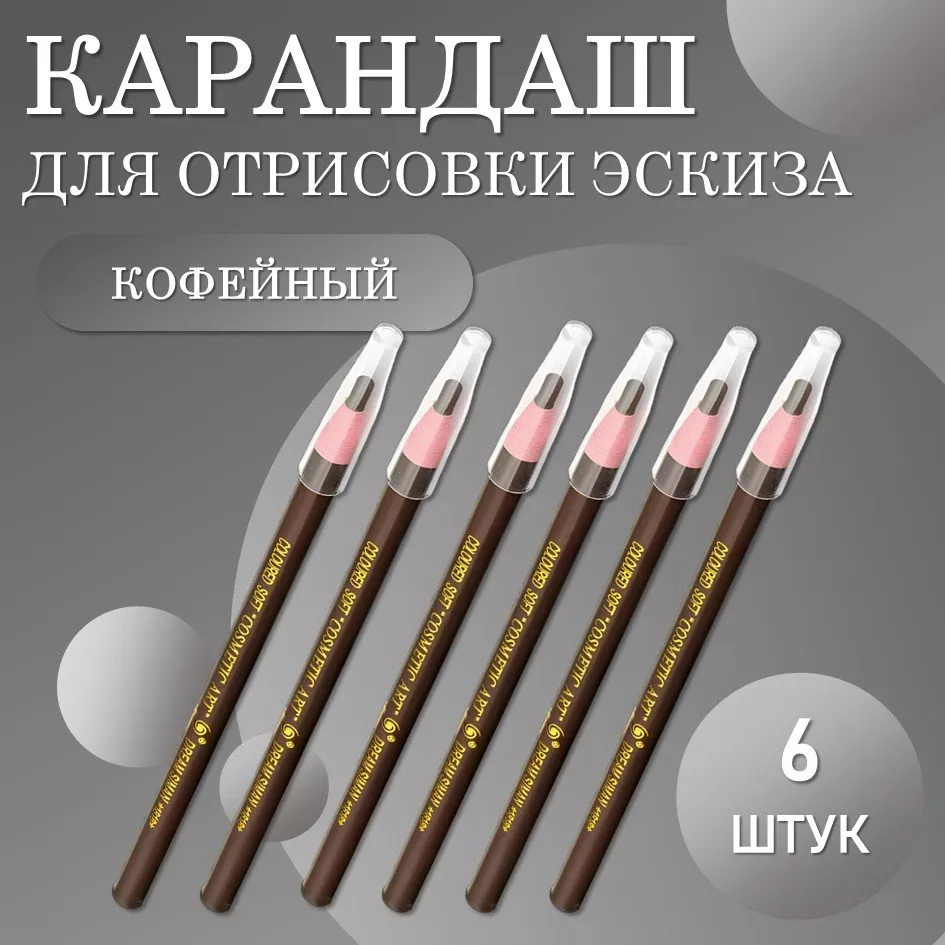 Карандаш для отрисовки эскиза водостойкий, кофейный - 6 шт