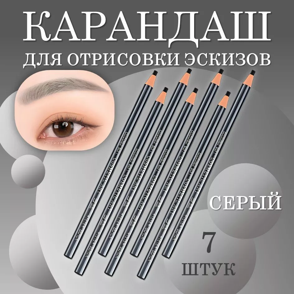 Карандаш для отрисовки эскиза водостойкий, серый - 7 шт