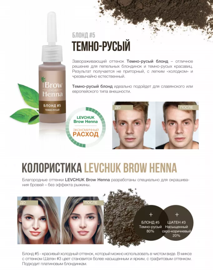 Когда впервые попробовала хну BROW HENNA, сразу почувствовала разницу, так как раньше пользовалась средствами другого бренда. Эта хна гораздо легче разводится до нужной густоты, причем никаких проблем в виде комочков и крупинок нет. Самым актуальным у моих клиенток является цвет Холодный кофе из серии Шатен, но есть у меня «про запас» и иные тона Броу Хенны.