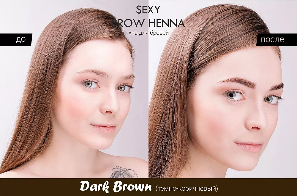 Биотатуаж в домашних условиях. Зачем тратить деньги на салон, когда можно сделать самой дома? Советы по разведению и нанесениюхны. Темно-коричневый оттенок. Всем привет! Брови - это моя любимая тема для отзывов, хотя в последнее время я пишу о таких средствах редко. Но дело скорее в том, что я начала активно красить их хной и краской, поэтому покупка и тестирование новых средств для макияжа отошли на второй план. Ведь так прекрасно, когда проснулась с утра и уже красивая и не надо тратить время на рисование бровей. А еще более прекрасно, когда можно сделать это самой в домашних условиях, а не оставлять кучу денег на биотатуаж бровей в салоне, который в итоге держится у меня всего неделю. Сегодня хочу рассказать о хне для бровей Sexy Lashes Sexy Brow Henna, с помощью которой можно нарисовать красивые и естественные брови в домашних условиях. Одной капсулы хватает на 2 раза. Состав: Henna, Azadirachta Indica, Emblica officinalis, Eclipta Prostrata extract, Barium peroxide, P-Phenylenediamine, Sodium Sulfate, Citric Acid В составе есть 2 компонента, которые могут вызвать аллергию. Поэтому за сутки перед первым применением рекомендуется сделать тест на аллергию, нанеся немного краски на руку. У меня никакого раздражения или аллергической реакции не возникло. Срок годности 3 года. Оттенки на выбор: Светло-коричневый Коричневый Темно-коричневый Черный ❧ Как правильно выбрать оттенок • Самым важным критерием для выбора является цвет волос. Блондинкам и девушкам со светло-русыми волосами стоит выбирать оттенок на один или два тона темнее своих волос. Для шатенок и брюнеток подойдет оттенок наоборот на тон-два светлее собственных волос. • Так же стоит обратить внимание на цвет глаз. Так, например, девушкам с голубыми глазами больше подойдет серые и светло-коричневые цвета. Для зеленых глаз светло и темно-коричневые. Для карих глаз темно-коричневые и черные оттенки. К своим рыжим волосам и зеленым глазам я выбрала темно-коричневый оттенок. Консистенция мелкого порошка зеленого цвета, с каким-то болотным оттенком. Аромата я никакого не заметила. ❧ Окрашивание бровей Это уже не первое мое окрашивание бровей в домашних условиях, но хной я до этого не пользовалась. Мои брови тонкие, негустые с проплешинам. Кожа нормальная. Сами по себе брови очень светлые, так что без их макияжа я даже мусор вынести не могу выйти. Ежедневное окраска бровей тенями или карандашом занимает время, которое не всегда у меня есть. Поэтому идеальным решением стало самостоятельное окрашивание бровей краской или хной. Перед началом окраски нужно подготовится, кроме самого набора вам могут понадобиться ватные палочки, чтобы сразу подправить татуаж, если что-то получится не так. ❧ ❧ Подготовка ❶ Первым делом нужно очистить лицо и проскрабировать брови любым скрабом для бровей, можно использовать для этого специальный скраб для бровей SEXY Brow Henna. ❷ Следующим этапом будет обезжиривание бровей, после чего нужно дожидаться их естественного высыхания. В качестве обезжиривателя я использую Хлоргексидин. На обезжиренных бровях хна будет держаться дольше, поэтому не стоит пропускать этот пункт. ❸ Приготовление смеси Для одного окрашивания потребуется половина капсулы. На такую порцию хны мне достаточно .4 капли раствора. После добавления активатора, смесь нужно тщательно размешать и дать ей настояться около 5 минут. Готовая смесь по консистенции дол