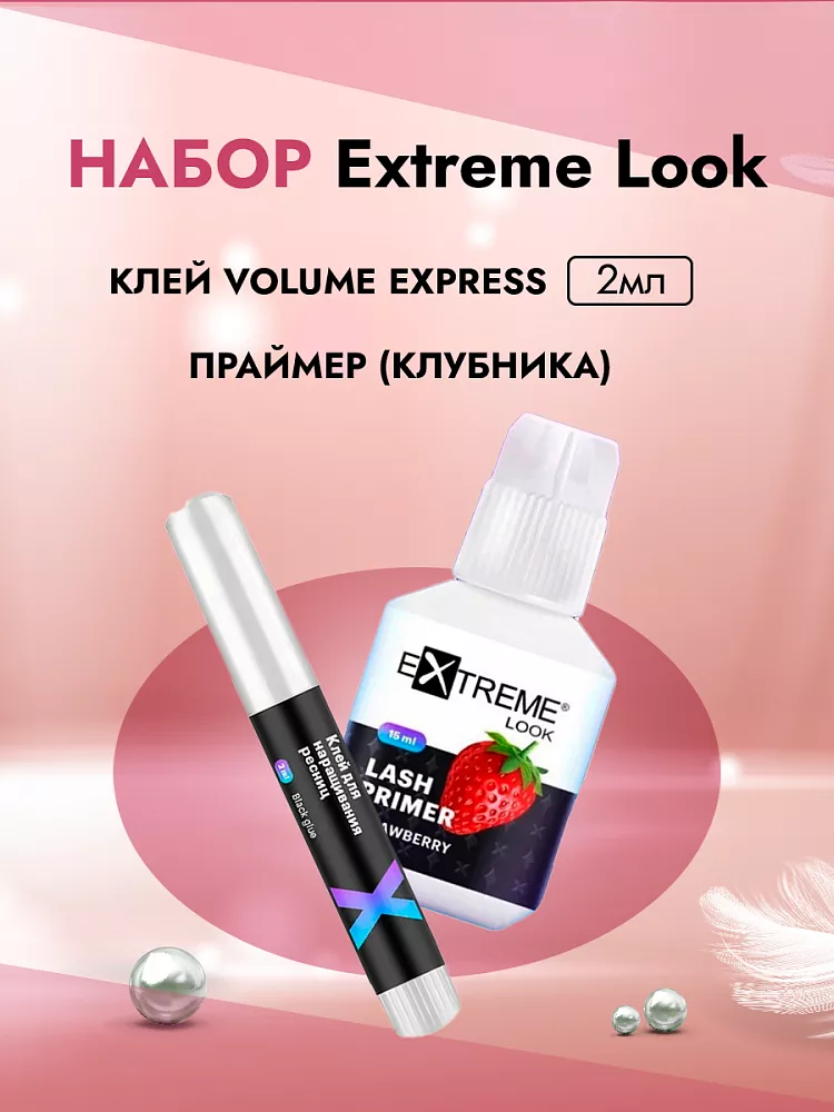 Набор Extreme Look Праймер (клубника) и Клей Volume Express 2 мл