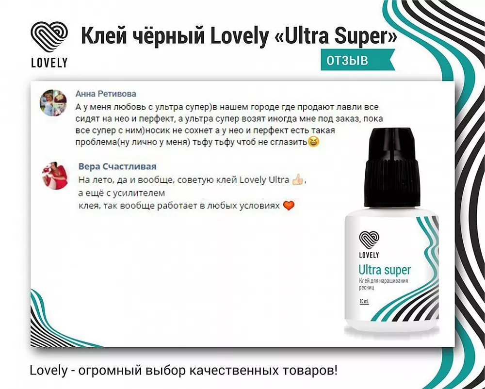Клей Лавли Ультра Супер — оптимальный выбор для опытных лэшмейкеров. Средство обладает очень высокой скоростью сцепки, соединяя искусственные волоски с ресницами всего за 1 секунду. Клей практически не пахнет, не утрачивает эластичности после высыхания, обеспечивает надежную фиксацию наращенных ресничек сроком на два месяца. Приобрести оригинальный продукт от бренда Lovely по лучшей цене вы можете у нас в магазине.