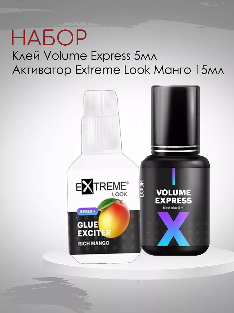 Набор Клей Extreme Look Volume Express 5 мл и Активатор клея Extreme Look Манго 15 мл
