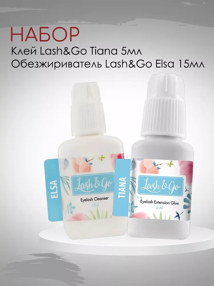 Набор Lash&Go Клей черный "Tiana" 5мл и Обезжириватель ELSA, 15мл