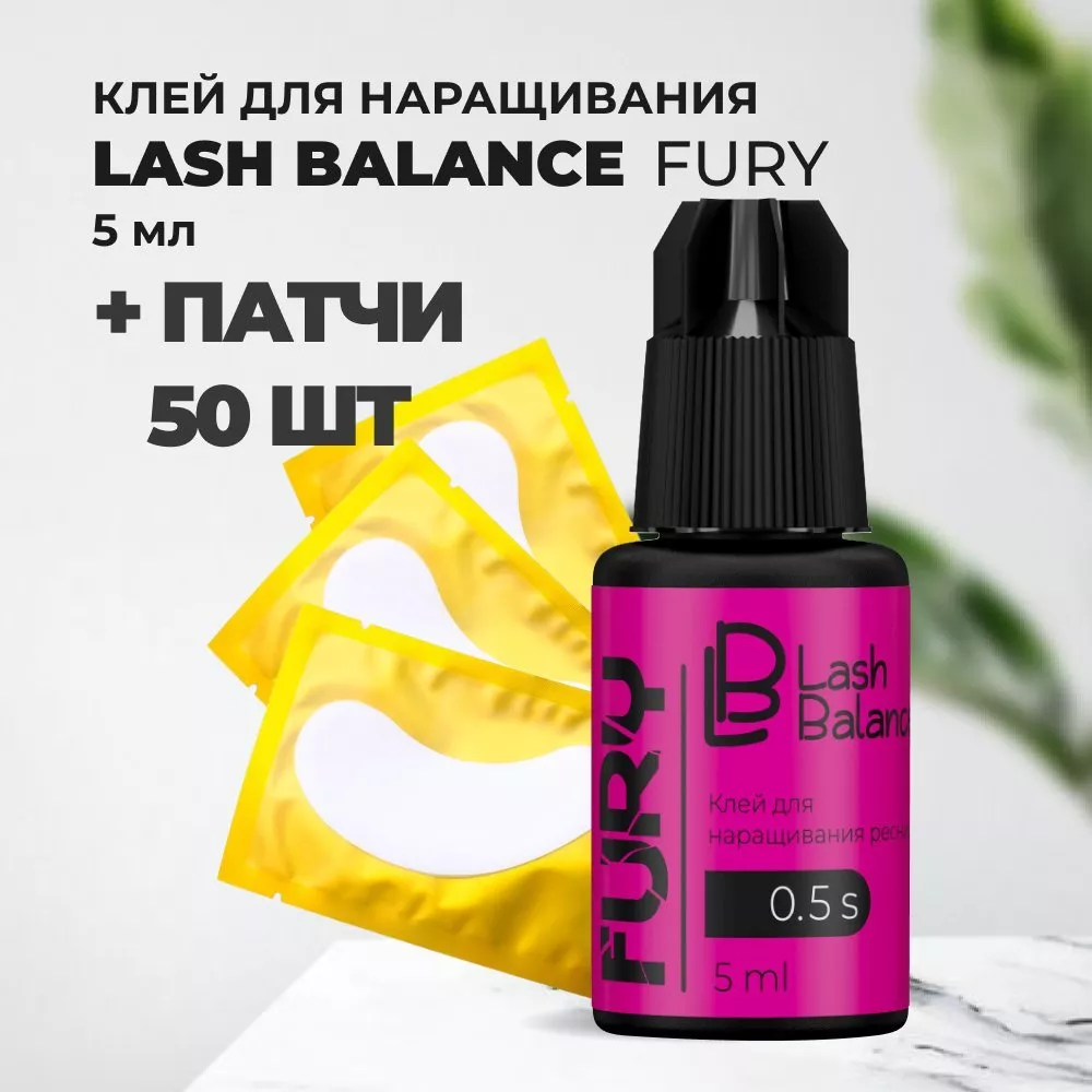 Набор Клей для наращивания ресниц Lash Balance "FURY" 5 мл и 50 патчей