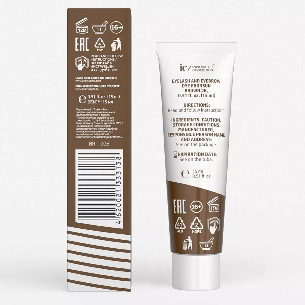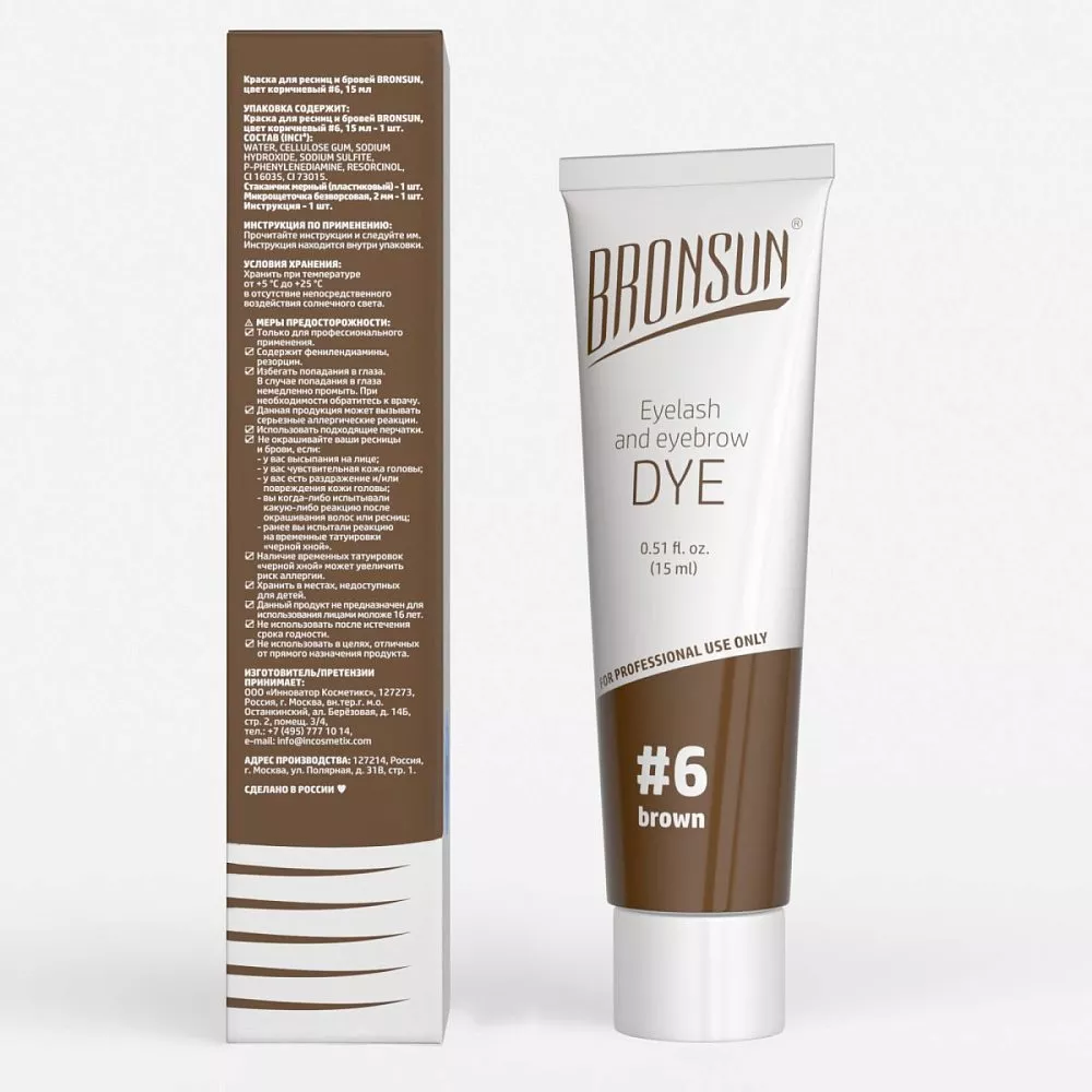 Краска для ресниц и бровей BRONSUN (Бронсан) цвет коричневый #6 new, 15мл
