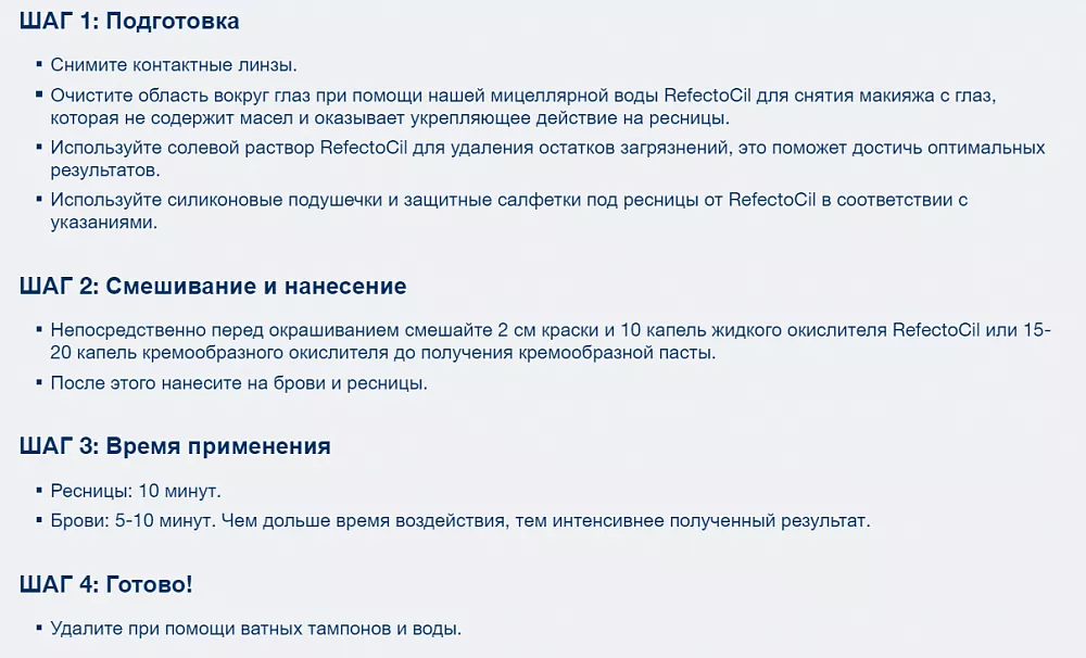 - Смешивается со всеми 8 красками RefectoCil.