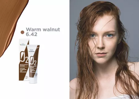 Четвертый цвет в палитре — Warm walnut #6.42 — «теплый грецкий орех», который подойдет каждой женщине с теплым цветотипом лица. Хотите приглушить яркость краски или добиться идеальных полутонов? Используйте крем-дилютер для создания оптимальных колористических решений.