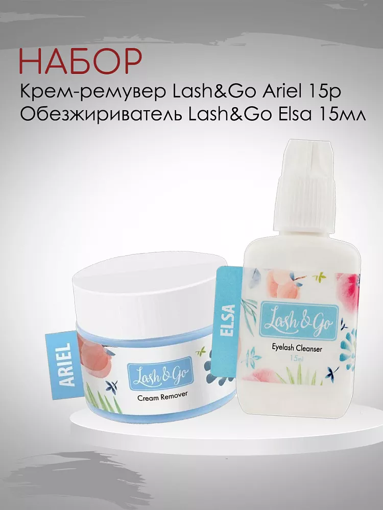 Набор Lash&Go Кремовый ремувер Ariel, 15гр и Обезжириватель ELSA, 15мл