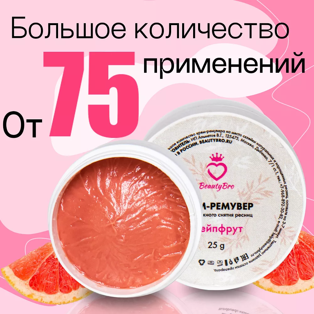 Главной особенностью кремового ремувера от Beauty Bro является его уникальный аромат грейпфрута. Он придает ощущение свежести и энергии, это делает процесс удаления ресниц более приятным.