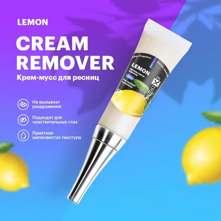 Крем-мусс для ресниц от extreme look- "Lemon" предназначен для безопасного снятия наращенных ресниц. Легкий и воздушный и с притягательным ароматом лимона.