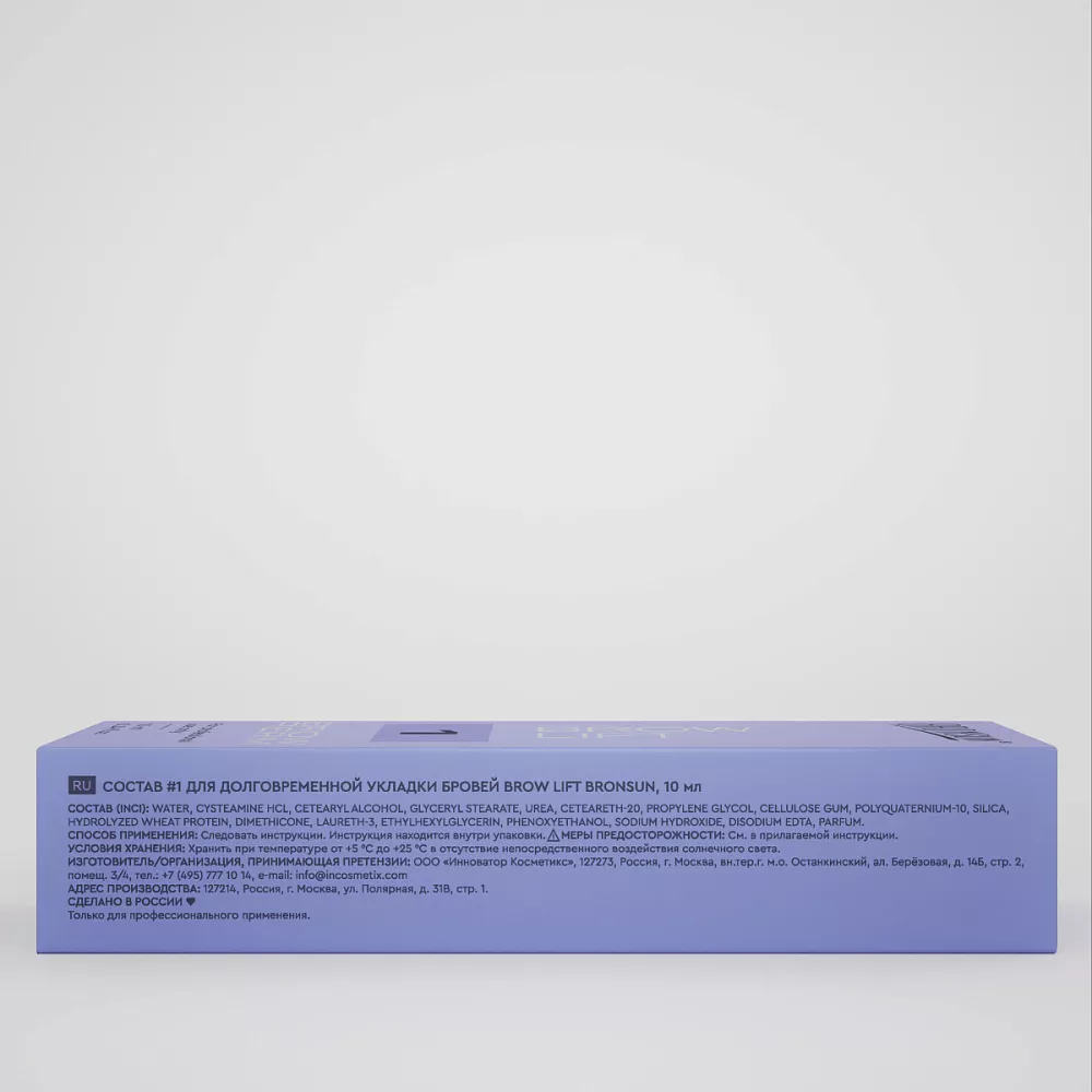 Состав #1 для долговременной укладки BROW LIFT BRONSUN используется на первом этапе долговременной укладки бровей. Делает волоски мягкими и послушными, подготавливает их ко второму этапу. Консистенция состава кремообразная, удобно наносится и не растекается.