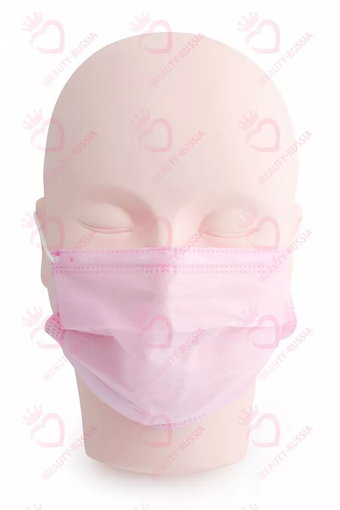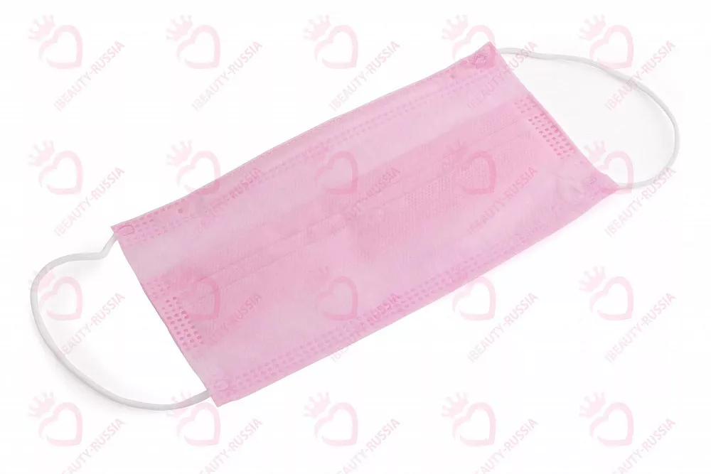 Трехслойная одноразовая маска на резинках с носовым фиксатором.