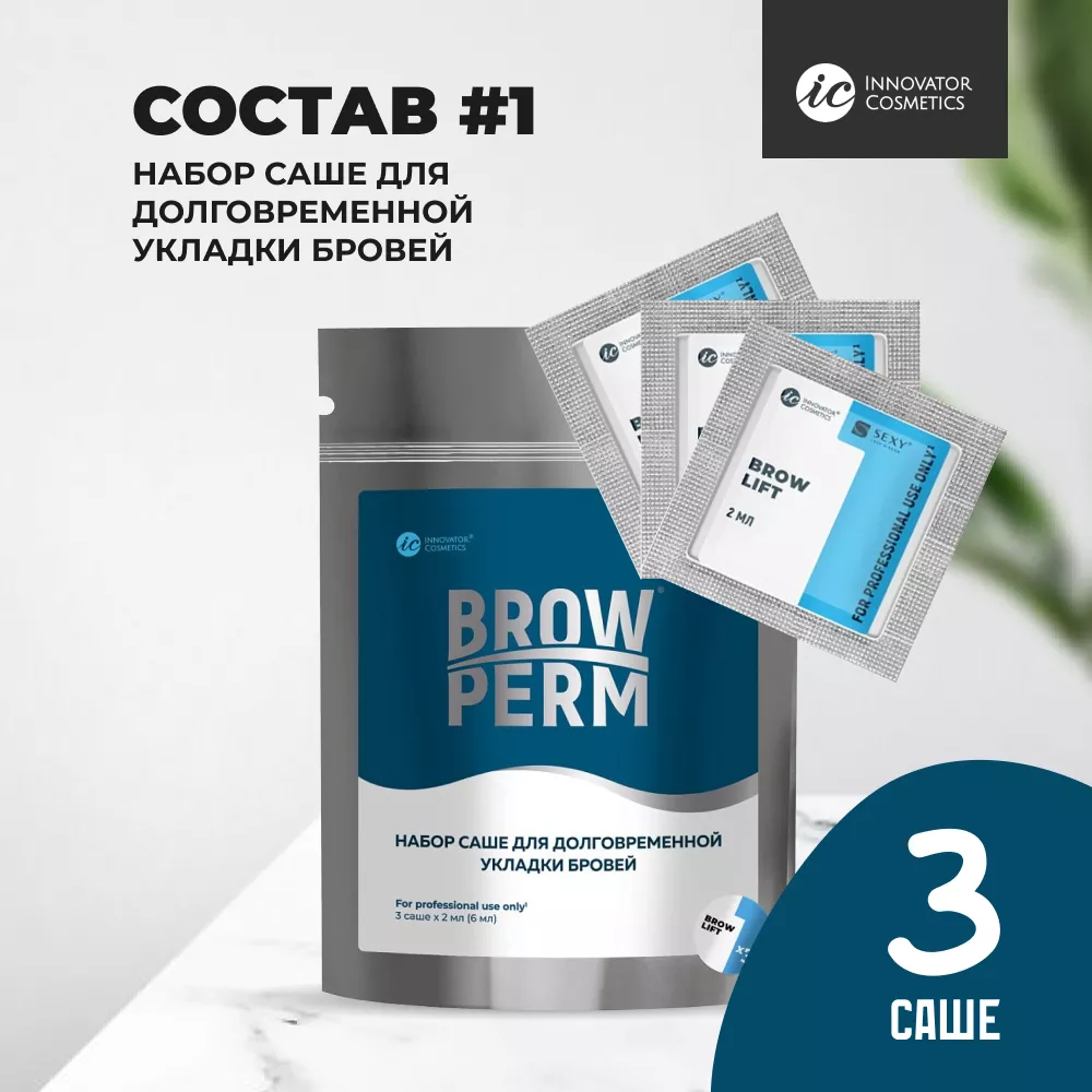 Набор саше с составом #1 BROW LIFT для долговременной укладки бровей Innovator Cosmetics BROW PERM, (3 саше x 2мл)