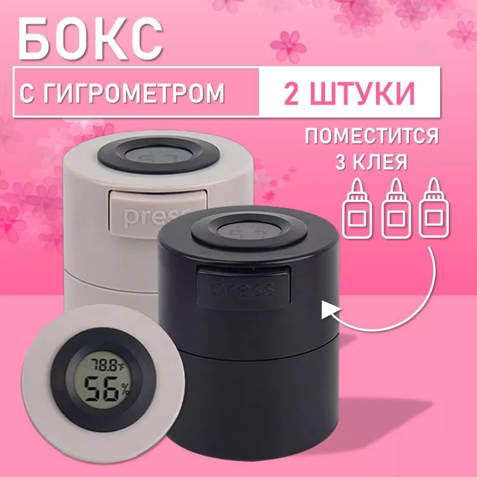 Бокс для хранения трех клеев с гигрометром черный и серый