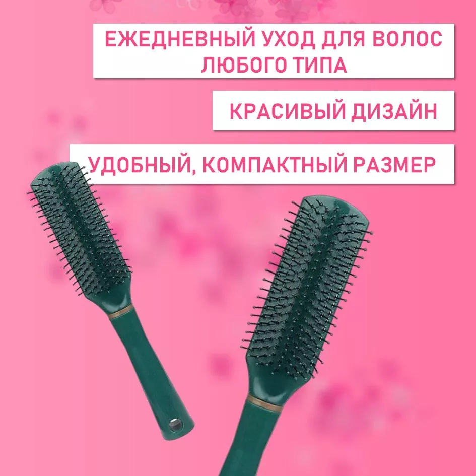 Расческа масажная плоская темно-зеленая 2 шт