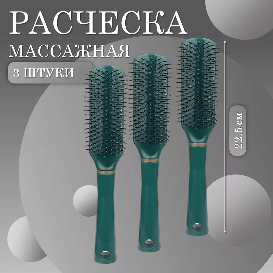 Расческа масажная плоская темно-зеленая 3 шт
