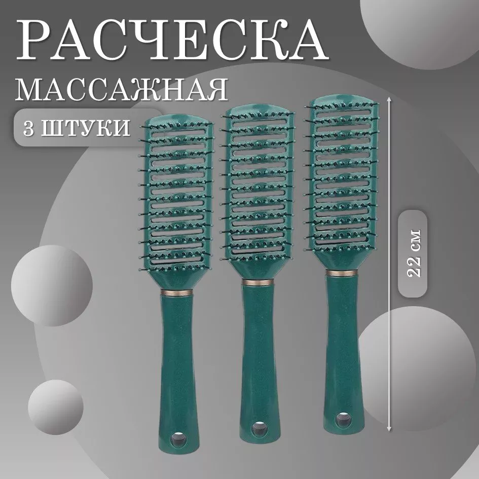Расческа масажная продувная темно-зеленая 3 шт