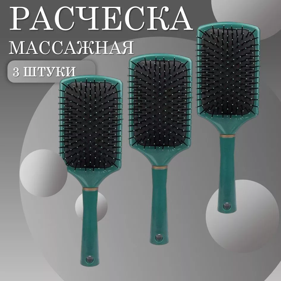 Расческа масажная квадратная темно-зеленая 3 шт