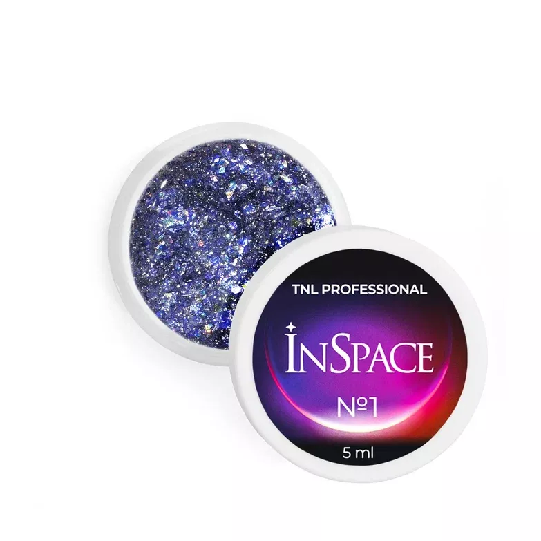 Гель для дизайна InSpace, светоотражающий с голографическим глиттером №01 - оптический фиолетовый, TNL Professional, 5 мл