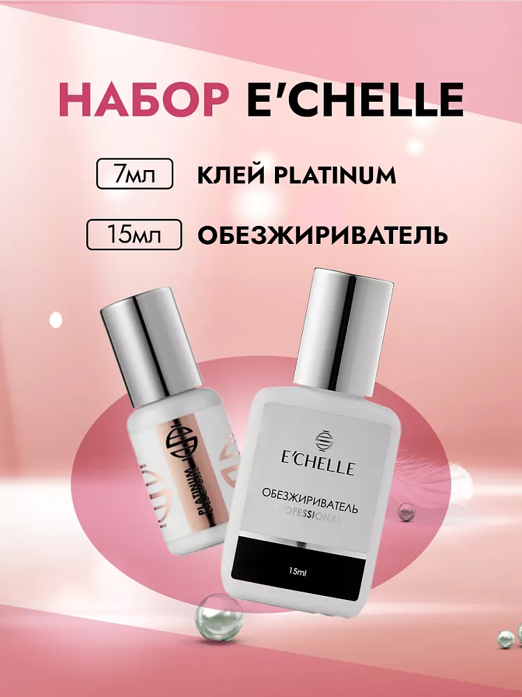 Набор Клей PLATINUM, 7 мл и Обезжириватель PROFESSIONAL, 15мл E'CHELLE