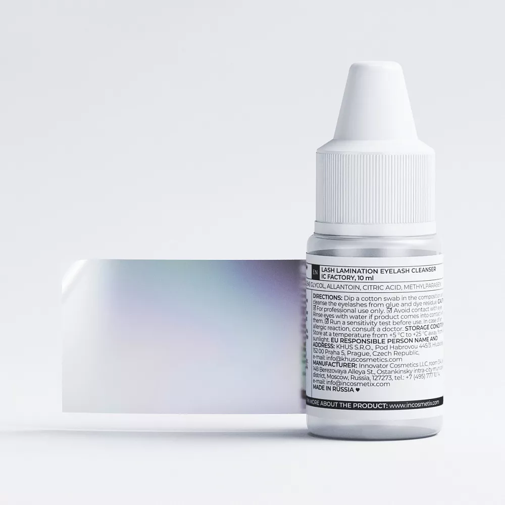 Специальный очищающий состав в линейке средств для ламинирования используется для удаления остатков клея с ресниц и бережного снятия силиконовых валиков с век. Эффективно удаляет остатки составов и краски с ресниц. Используется после этапа окрашивания для снятия ресниц с валиков.