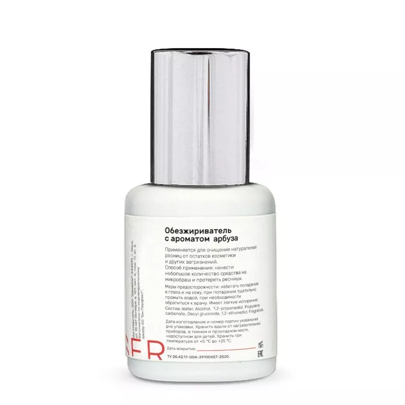 Обезжириватель препарат, используемый на этапе подготовки ресниц для обезжиривания поверхности, удаления остатков загрязнений (например, пыль, остатки косметических средств, естественные кожные выделения (пот, жир, солевые выделения)). Наносится на натуральные ресницы.
