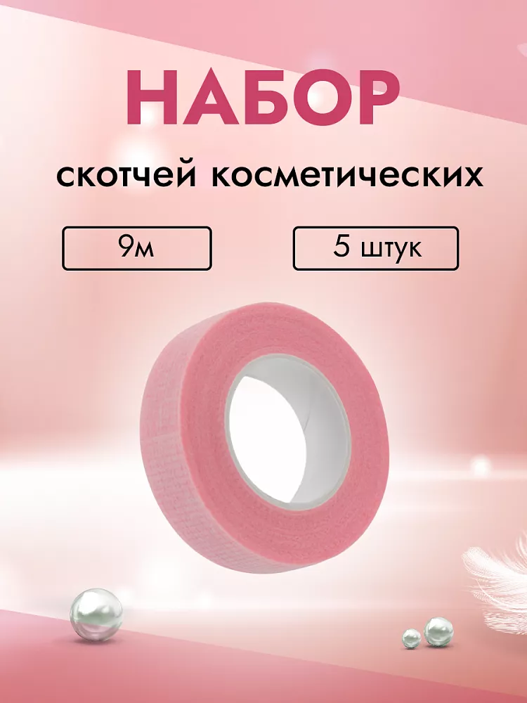 Набор скотчей косметических с перфорацией узкий розовый, 9м 5 штук
