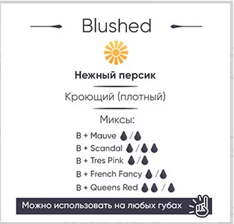 Для такого пигмента характерен нежный, красивый оттенок персика. Идеально подходит для женщин славянской внешности, блондинкам со светлой кожей. Данный пигмент эффективно перекрывает фиолетово-синие оттенки старого татуажа, нейтрализует любые натурально-холодные цвета на губах.